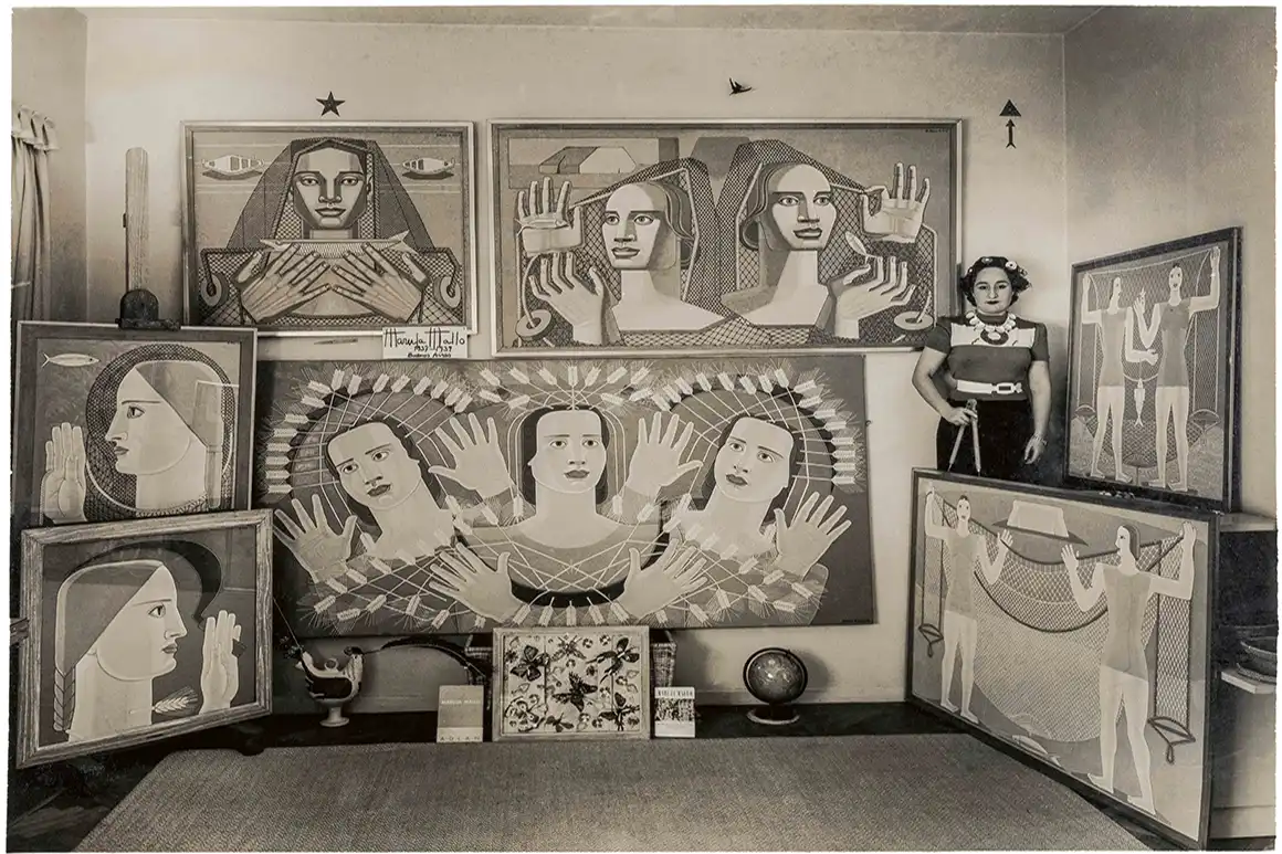 En 1932, sin embargo, viajó a París y el surrealismo la deslumbró. Conoció a André Breton, a Picasso, a Miró, y de esa etapa nacieron obras como Espantapájaros, donde lo onírico y lo simbólico se unen para crear un universo propio. Su estilo se volvió más experimental, más profundo: geometrías, mitos, naturalezas reinventadas.